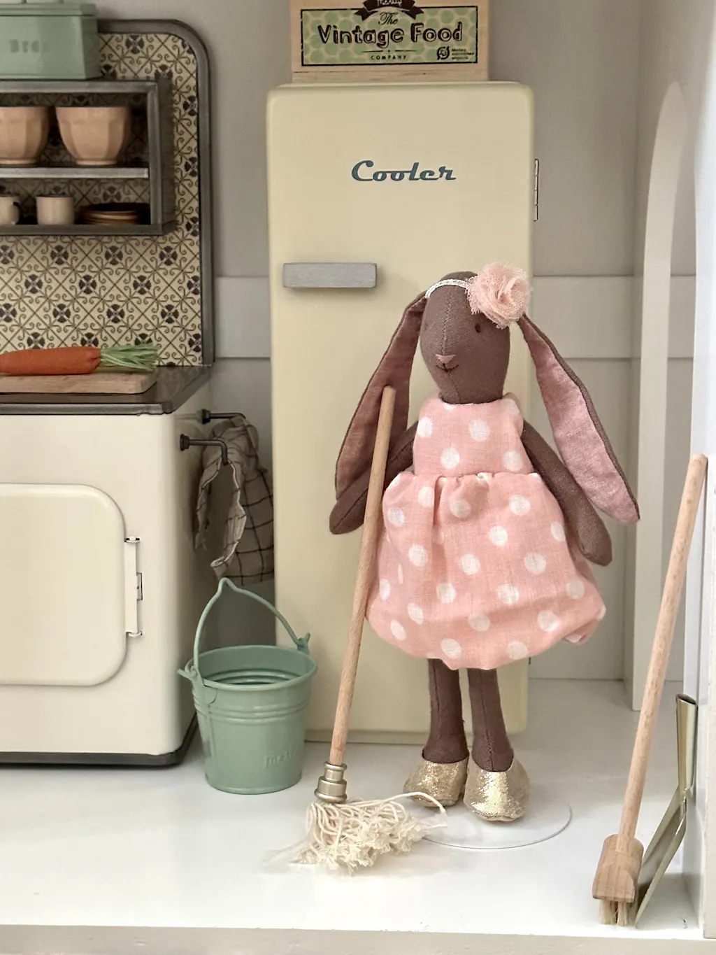 Maileg buddies need a bucket and mop to clean up those messes they make. This bucket and mop is perfect for MINI sized Maileg friends.